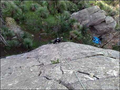 There has been another blip in the wet weather for a few days, which let the sun come out to play. So Chris and I took advantage and drove up towards to Perth to visit a crag neither of us had been to before. Boomer Crag doesn’t have heaps of routes on it but it is nestled in the hills and has a completely atmosphere to the coastal crags that we normally visit.