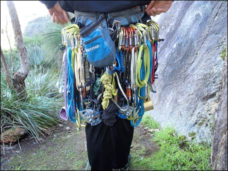 While there was still the crag classic to bag, an awesome vertical crack. It was Chris’s lead and he didn’t feel he could do it the justice it deserved. So we decided to leave that for next time, but as he was climbing with me he wasn’t getting out of his next lead. So for the next one he piled on all the gear we had: