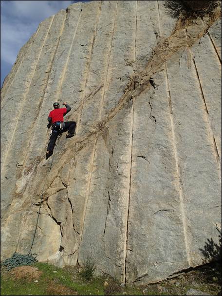 We then packed up and headed back to the car, but before heading off decided to check a short 10m crag that was right on the road side. It sported four bolted lines so we decided to bag a couple before finishing. The climbing was very contrasting to what we had just been doing but was equally fun, we were not sure of the grades but reckoned on 17ísh for both: