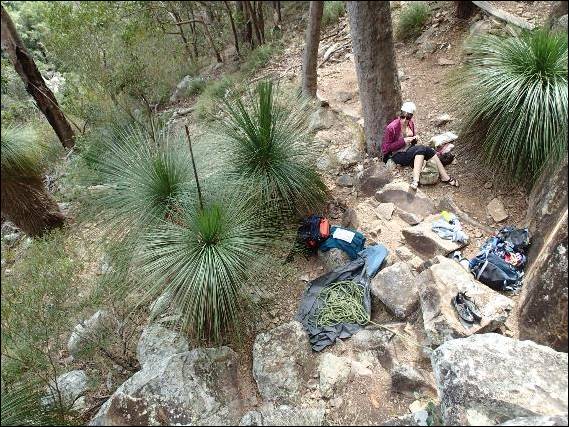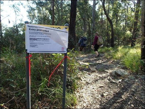As the walk in above shows they have in recent times undertaken a controlled burn to manage the ever increasing fuel loads of the Australian bush. The path from the carpark was the dividing line between the starkly different burnt and unburnt sides. Due to the burns formerly relatively sound boulders and ground at the top of the buttress could have been made less stable. As such climbing was only permitted on the northern sector (well to be picky north east!):