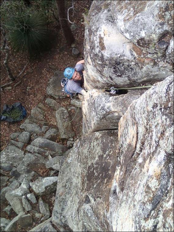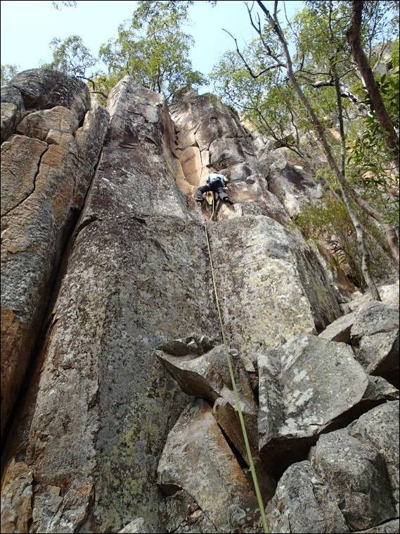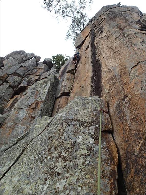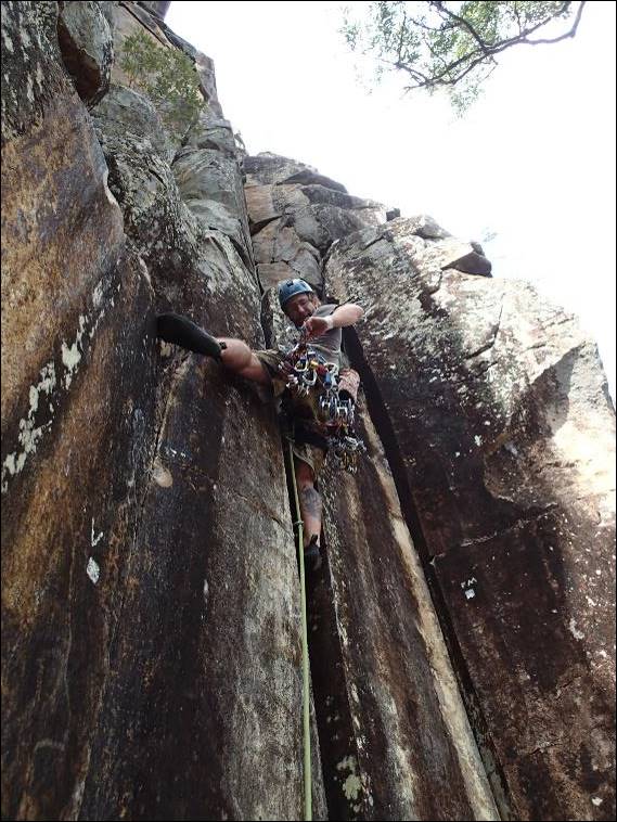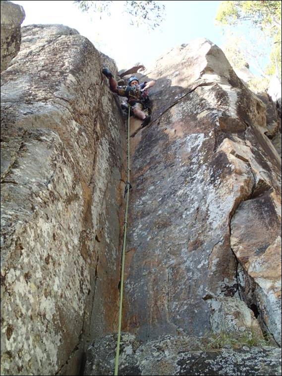 There was no mucking about and Mikie threw me onto a not so great named climb Shit Heap (14), my first real taste of a hand jamming crack – ever! I’ve been up some cracks but never one where you have no choice but to jam your way to glory. I brought with me my mid to large cams and hexes and with Mikie’s gear we had enough to stitch our way up: