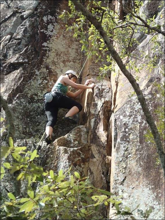Helen is not an avid climber, but does enjoy bagging a route or so a day, so she followed up second. While she was struggling and grunting her way up (sorry Helen) I enjoyed the view through the tree tops. This climb is not very long but it was a great introduction to what to expect: