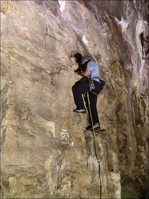 We got there soon after 7 and stayed for two and half hours but we managed to squeeze in five climbs and I did the last one twice because it was sooooo good. Here Mikie is on the third lead of the night, I did the first two (18 and 20) and they were both great especially the second one. This one was a bit cheeky as the hold were well and truly hidden in part due to the night climbing with the mega bright spot lights blaring up at you from below. Mikie cruised up but I failed at the last moment not finding those elusive holds (one you may remember Chris), it was still a great climb and my ego was not dented in the least. It was after all a 21: