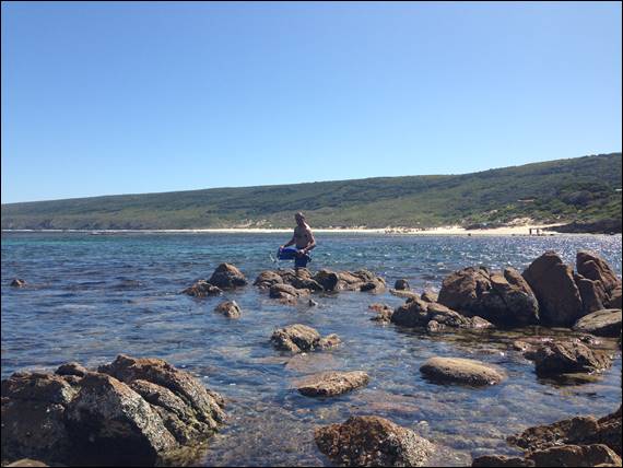 On Elseya’s second day of the dance workshop we had already decided to head out for a snorkel somewhere. We aimed to head back to Castle Rock where we had gone a week or so before but didn’t manage much time in the water due to the shark alert. Our local Peppy Beach was flat as a pancake but at Castle Rock it was rough again, so we headed to Yallingup instead: