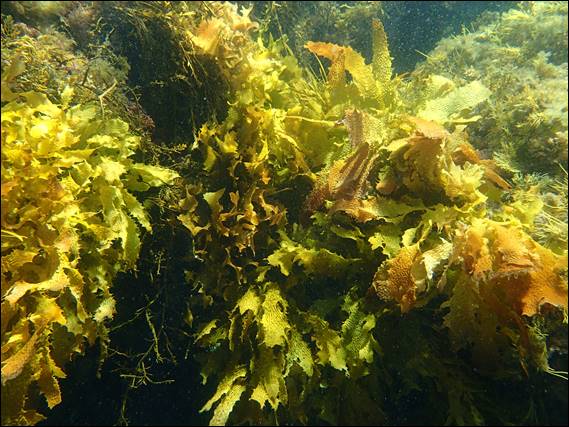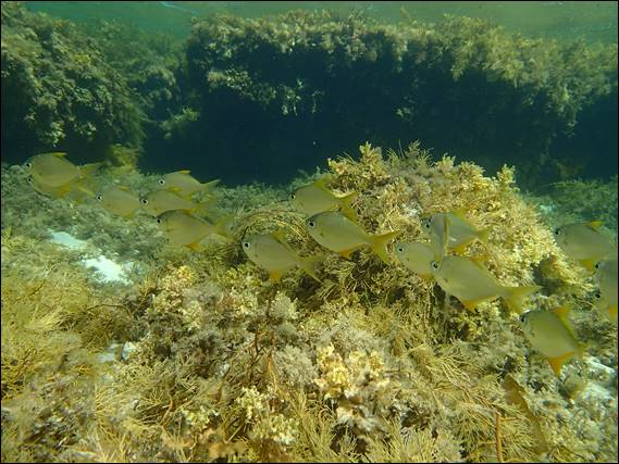 The first fish I was greeted with was a shoal of Western Pomfred, they yellow fins and tails merging in pretty well with the sea weed but they big black eye stood out really well. It was certainly deep enough to snorkel in but it was a bit hard to duck dive down to get in amongst the fish: