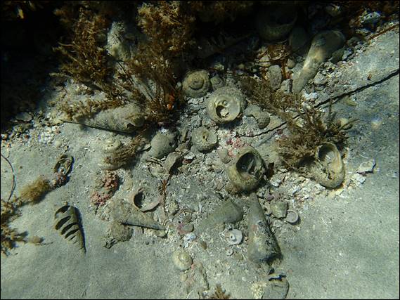 While the place was alive with fish and exploding with colour from the weed, I did notice that there were a great many old shells. They looked to me like shell graveyards, with some sizable Campanilidae (the cone shaped ones) and Ninella whitleyi (the shorter stubby ones) shells: