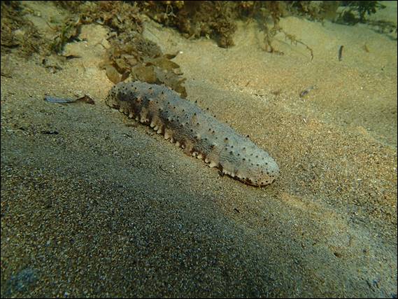 I then spied a Sand Gobbler making its way not surprisingly across the sand. These are also called Sea Cucumbers, and it is a bit tricky to identify but I’m going to guess it is a Thelenota anax. It is a small one at only 30cm long and they can get easily double that size: