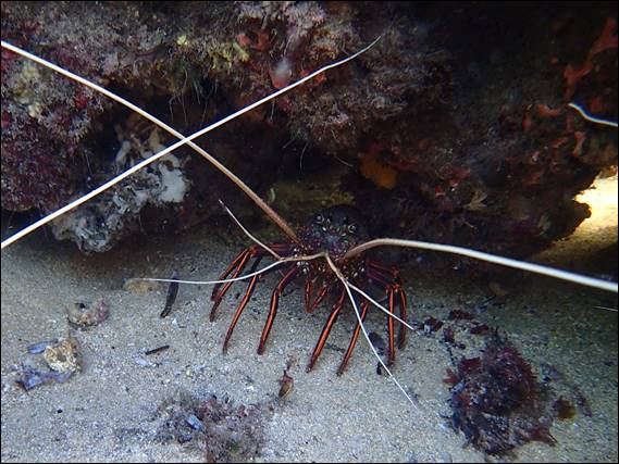 As I was looking about something caught my eye and after diving down a few times I came across , for the first time, some Western Rock Lobsters. I came across three in all and was led to believe that you had to swim out 200m to get the outer reef to find these fells. Being a wuss I only ever go out about 20-30m, so was stoked to finally get to see these amazing creatures up close in their natural habitat: