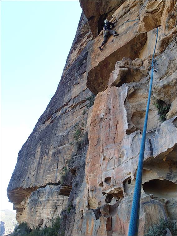 Rongy fancies Black Bart another mixed route and this time he did indeed use some trad. The arête didn’t look anything special but was full of interest and had several tricky sequences. Being 30m it was long enough to get into the swing of the climb and become absorbed by yet another type of sandstone formation that we had not yet encountered: