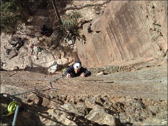 The Bad and The Ugly didn’t look that great after closer scrutiny, so I contemplated another line that I had spied some time back. TZ was described as a good finger crack and I am partial to that kind of jamming. It is also the name of a dish I used to have when I lived in Ghana. With all that going for it and after looking at the line my mind was made up. The first pitch was a glorious corner with great stemming before the steep crack above which turned out to be more a crack for gear as you used the face and did the occasional hand jam where it opened up. It felt sustained and committing but damn good and I thrived all the way up, even if I had the jitters along the way: