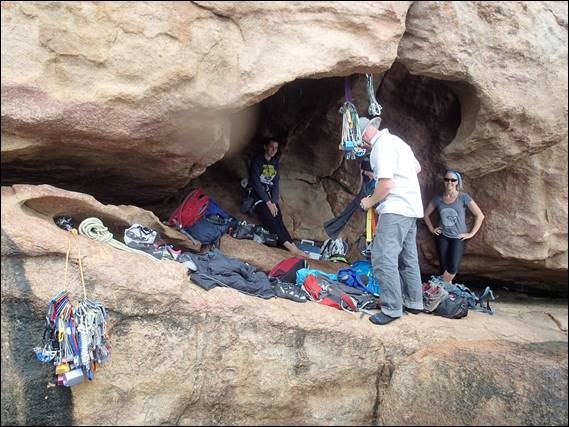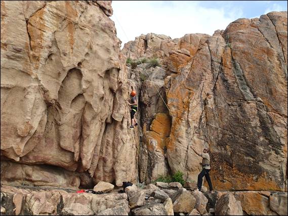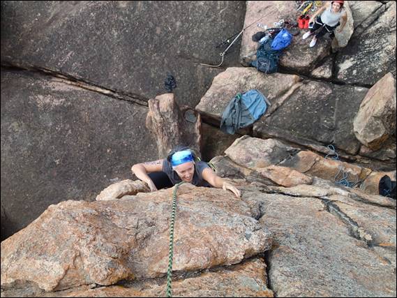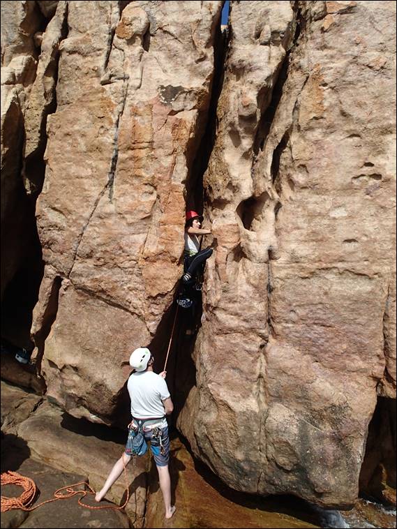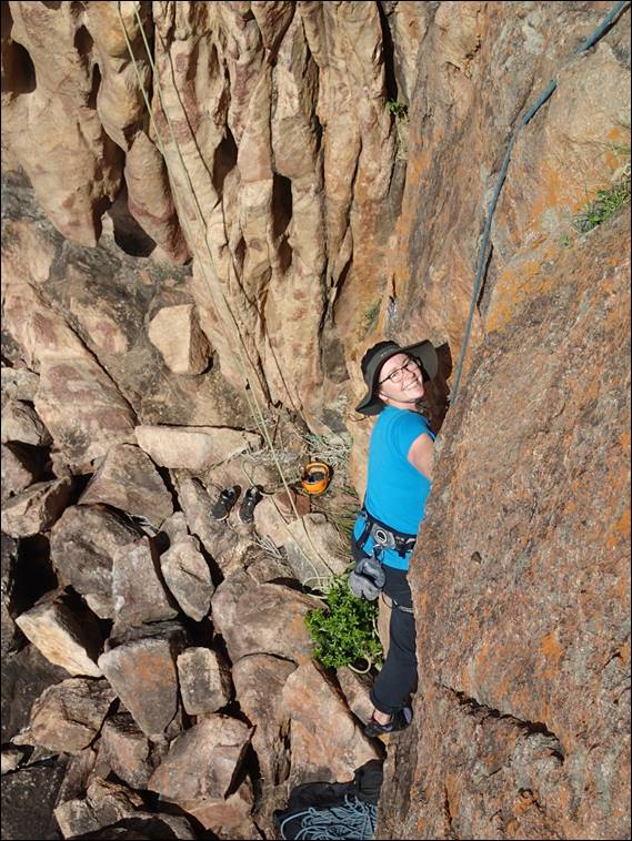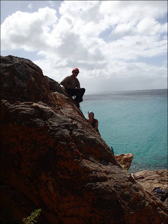 Thanks to Will for offering to take an image of the happy couple once again on rock together. The image almost never happened as Lisa was somewhat in pain and wanted to get those little rubber shoes off, but she gritted her teeth for a perfect smile before being lowered back down: