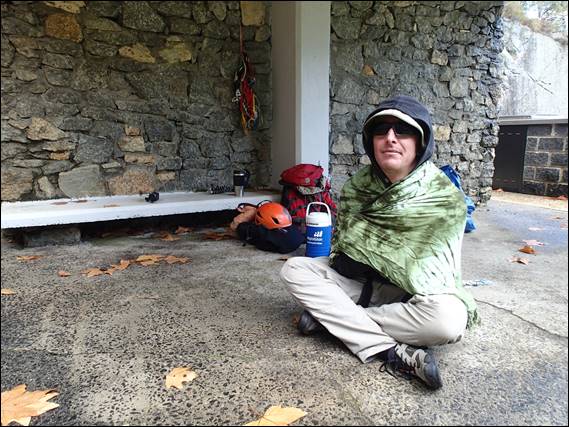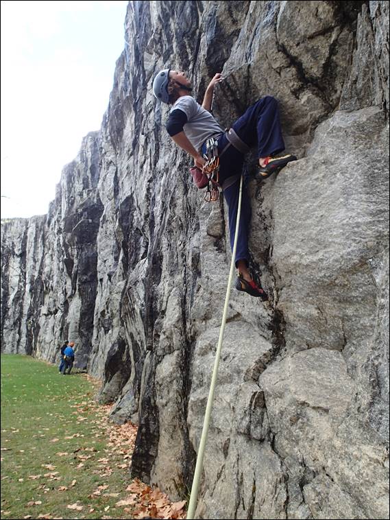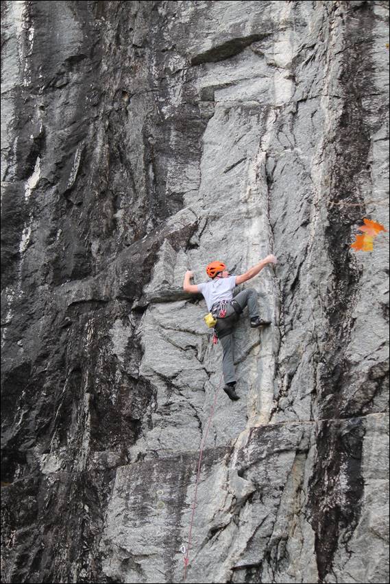 Wiggins stuck in there and waited for the storm to pass, and luckily Steve was obliging. Then he doggedly made his way up the now wet rock, with the familiar black streak of The Long Goodbye to his far left running like a waterfall. Um it looks like I missed my chance to bag a clean lead on The Long Goodbye until things dry up in spring. Oh well we all have to have some projects to aspire too at Welly Dam: