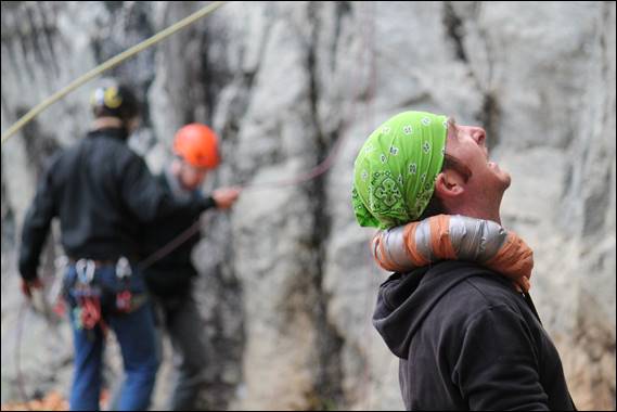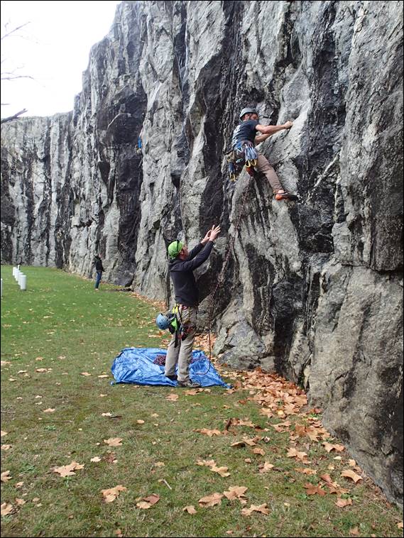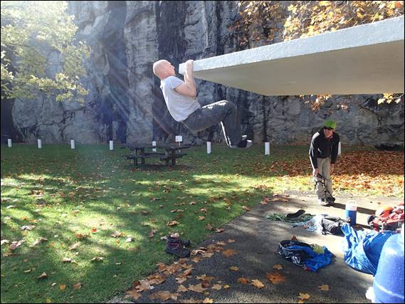 Amazingly after Wiggins came down and pulled the rope we were once again bathed in sunlight. This seemed to give some people a second lease of life. So what better thing to do than pull-ups inclusive of knee raises. Rhys (who due to the warming sun had shed some of the layers and started to move again) and I also join in with this silliness J. It was a grand day out and enjoyed by all of us who can now well and truly claim that we are not fair-weather climbers: