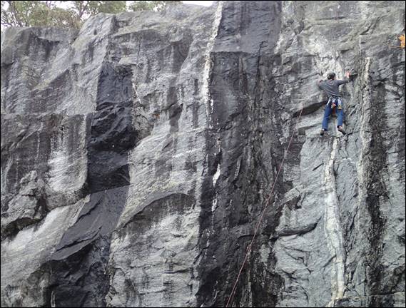 It has been an age since Kym has joined us at Welly Dam, so it was only fitting to offer him first lead. He was keen-as picking the delightful Just Do It, which he promptly did in great style even starting and finishing direct to give it that extra punch. Most of the route was still dry despite a number of big downpours over the last 48hrs, but the black streaks definitely had dampness about them: