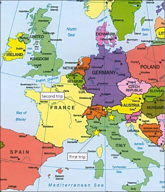 This did however mean that we jumped from one epic landscape to another and this included the Alps proper. I’d been to the Alps a number of times before, always on hiking holidays and I loved them. This time we may have seen them but we didn’t get to ascend any of the big peaks and stayed in the valleys. Not equipped for those lofty spires we did climb a few big boulders that towered several stories high. Much as I was itching to hike up at least one there was no time in our schedule, so we kept rolling. The striking view below was at Val De Mello: