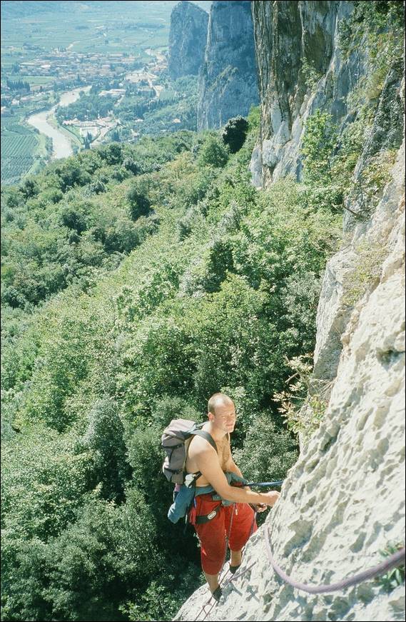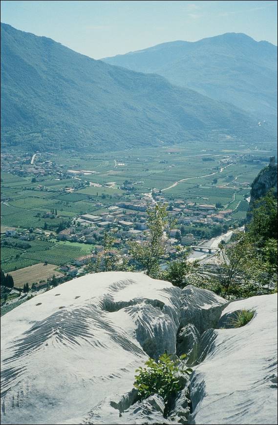 I couldn’t resist this image of Arco from above, we stopped in a small but cosy campsite just out of town and each night would wander to a local’s bar to drink some wine. The local’s bar had wine straight out of the barrel, no preservatives or added nasties and I was amazed that it never once gave me a fuzzy head in the morning. In the town bars, for the tourists, the wine was bottled and as such I reckon that stuff would have given me a sore head. It was a good spot to stay and we climbed on a number of quality crags, big and small and I really started to enjoy it. I spied plenty of climbs that it would have been fun to play on but time caught up with us and eventually we needed to head back: