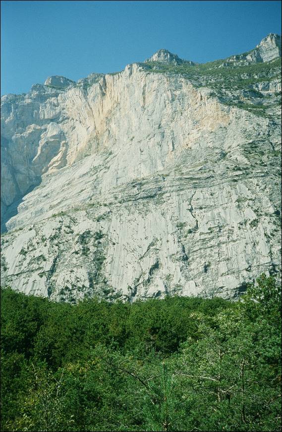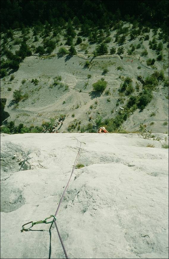 We didn’t stay there long and moved to another area this time returning to limestone. Vaccarese is a long crag set on a hillside with the base nestled in the trees and as you get up the routes the views out across the valley hit you. It’s a very beautiful setting and proved good fun in many ways. The walk in was calm and tranquil, making our way through the forest and crossing creeks on long bridges. The crag was steep and clean, long fun climbs a bit different to the pocket limestone and more featured with flakes and cracks. On occasion the holds ran out and this is where I first came across manufactured routes. On a number of lines the holds were far from natural and were formed by gluing on small rocks onto the blank face. It was literally like an outdoor climbing wall, but if you wanted to finish the climb you had to use the holds! One day here was enough and Kashi had kinda planned where we would head each day, it involved a fair bit of driving but he didn’t mind that. In fact at night he would race along the narrow mountain roads at a fair pace, confident that he could tell by the lights if anything was coming. Often with a steep drop by the side of the road and nothing but a rock wall to stop us going over it. At times the journeys felt a tad unnerving: