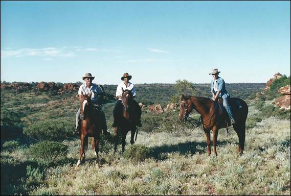 In March 2000 all the belongings I thought necessary for my new life in the Red Centre of Australia were crammed into one suitcase and a rucksack. This of course included my boots, harness and a few essential bits of hardware (in truth nearly all of my rack). I was taking a gamble by leaving the life that had provided me free weekends to scour the UK countryside in search of rock; and leaping into a small tour business that had the potential to devour every hour I was awake. To help nail down the coffin lid on my climbing activity I was moving to Alice Springs. A place known by most, including myself at the time, as a one horse town in the middle of a desert. It seems appropriate to include the following non-climbing related image of Lisa and I on horseback in the outback with Bill, the owner of the Ooraminna Homestead. Only 30min drive down a very bumpy dirt track on which we though our old campervan would shake to pieces. Lisa and I used to work at this Homestead on weekends helping by cooking, serving, cleaning and taking wildlife tours when bus groups rocked up for that outback experience: