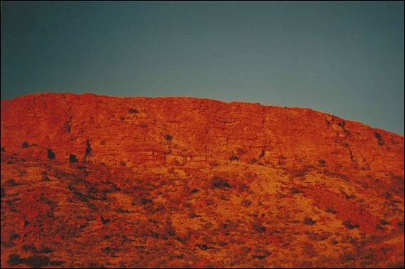 When I travelled to Alice Springs with my suitcase and rucksack I was travelling the cheap way, and that meant a two day bus journey from Melbourne to the centre. After passing Adelaide it didn’t take long for the scenery to change to a flat and almost featureless landscape. This continued for some 1,200km, and the lack of anything of a rocky nature helped conjure up images of my boots gathering plenty of dust. As we approached Alice Springs, in the last 30km or so, there were signs of land features that were significant and this raised my hopes. In the last few kilometres we passed through two sets of ranges that were up to 100m high. The second seemed to stretch east and west as far as the eye could see. More importantly for me I could see signs of small crags, so there was hope for my boots yet. So you may be wondering why I was moving here, well back in 1994 when I travelled round Australia for three months I made contact with a guy who owned a tour company. I kept in touch with him and after my two years in Africa had difficulty adjusting to life in the UK so looked for an alternative, and for better or worse I became a partner in his company. Yes this is me in jeans and a leather jacket riding one of the most impractical motorbikes on the market: