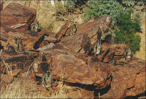 I have fond memories of the abundant wildlife we saw during our many visits here, they did not seem to mind our presence. It would be uncommon for us not to see large flocks of the majestic Red Tailed Black Cockatoo, who would graze in the paddocks behind the Horse Stables that lay directly opposite the crag. Wedge-tailed Eagles would soar high above with Black and Whistling Kites below them. We would climb with these large birds above us and have small Dusky Wood Swallows whistling past our heads as they moved in and out of the security of the crag. Belayers would sit and watch us while they were watched by Variegated Fairy Wrens and the many other small birds hopping around in the trees and shrubs. Big Red Kangaroos and Euros seemed to show no signs of being intimidated by us or our antics, occasionally they have wandered over to our packs to see what treats we may have for them. Left Wall was a great place for them with a sandy clear area where they would hide from the beating sun, while literally tem meters away we would be climbing and falling: