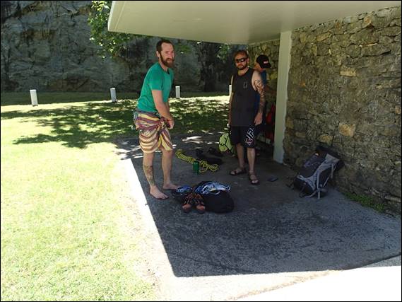 A quick clear up of gear in the shade and then it was back down the hill for all of us. So looking back I have decided that I was being a wuss, but feel like I have repented with nine climbs today. Admittedly, unlike in Kalbarri the highest (not the lowest) grade was 22. Maybe next time I’ll have to push the boat out a wee bit more, that said I do have that satisfying achy feeling after a great day on rock. So thank you to the crew:
