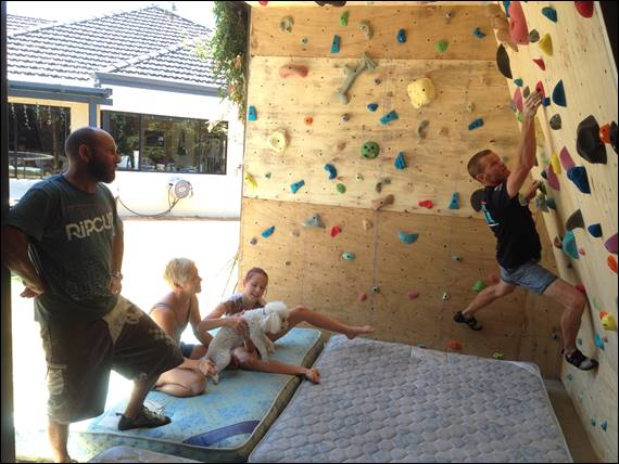 So after telling Lisa it may take 3-6 moths, it only took just over a month. With the wall complete it seemed crazy not to give it a go, and Elseya was the first to jump on and of course go for the biggest and best hold. We then set about having a general muck about: