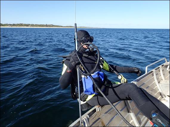 This comprised sticking your head in and seeing what is down there. While they were looking for reef, they also wanted a reef system that looked like it may be the home of crayfish. While I was going to bob about on top they would be below hunting for a feed of shellfish: