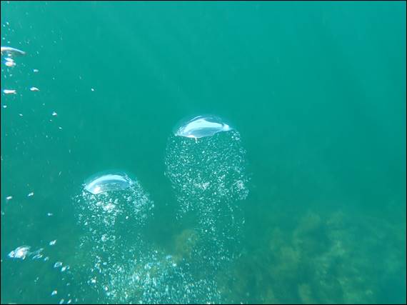 It was pretty cool watching the air rise up from below, looking a bit like jelly fish that got bigger and bigger until their exploded into heaps of tiny bubbles. From this image you can see that the visibility was not the best and if you looked out into the big blue it was hard to see too far, and hard to see what may be lurking: