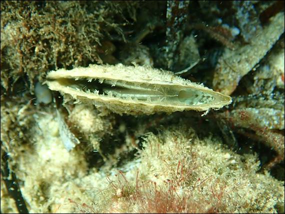 The sun was shining again last weekend so I did risk another snorkel and while it’s wasn’t all that clear just putting my head under water and checking out what I might find was refreshing. I came across a few more gems that are worth sharing, such as this image of the creature that lives inside razor shells. I managed to sneak up and snap a good shot before it sensed my presence and snapped shut: