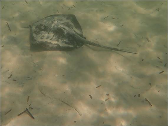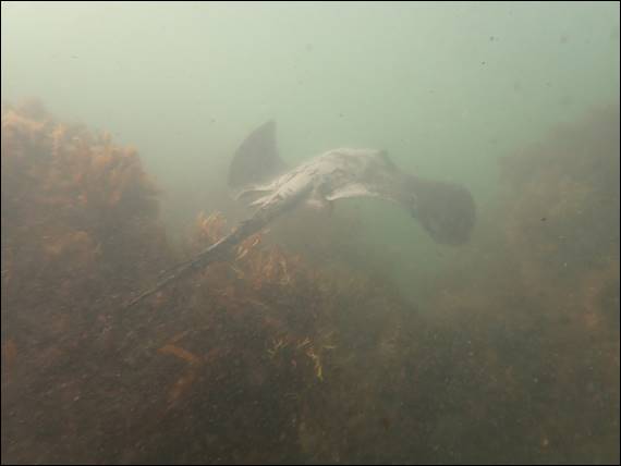 On the way back we came across a good sized stingray, the largest I have seen this season. So I followed it round for a while as it lazily wove around the rocks, and while I managed to get pretty close the light was not on my side to be able to get a good image. Finally I stopped and just watched it disappear into the soupy water:
