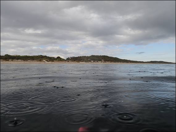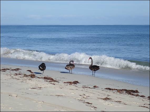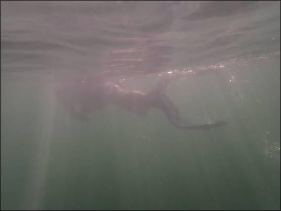 Today back at Peppy Beach Geoff joined me for my morning snorkel. After such a great three sessions yesterday I thought it would be worth another go today. We went to the River Mouth end, so not my usual spot. As we walked in we could see dolphins out there and also three young black swans. It looked relatively calm but it was hard to read whether the water would be clear or not: