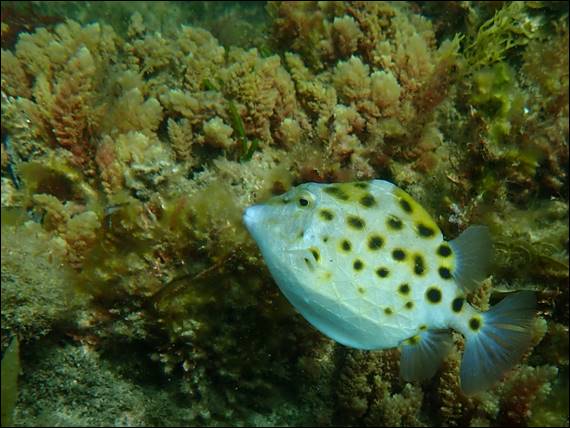 I was also able to get this clear image of a Western Smooth Boxfish, I see them regularly but they do not often let me get this close. For a bulky and not very streamlined fish they can really motor when they want to get away. I’ve found from experience it is futile to try and keep up with them. The blue tinge on the fins looks stunning when they catch the light: