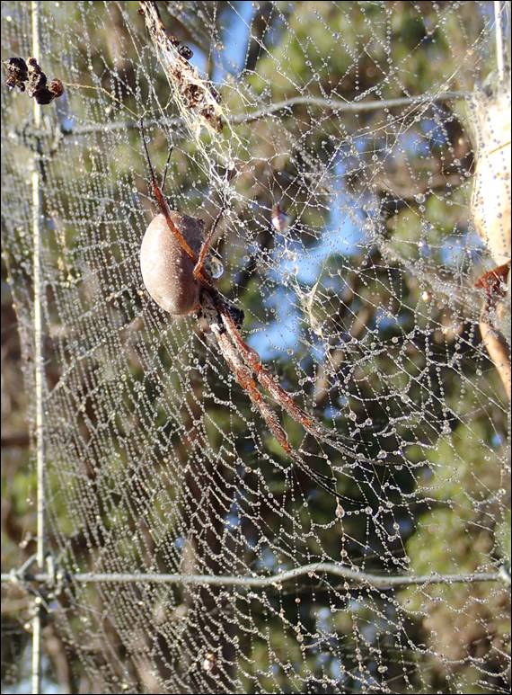 There are hundreds of Golden Orb spiders on this fence. Both webs and spiders were covered in water making for some very specky watery images, which is the loose connection that I used to sneak these images in. So after this slight change of topic the image after this one will be back to snorkelling: