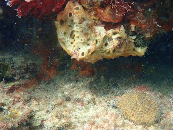 I’ve also been pulling together a decent collection of images of the many corals and sponges here. I reckon this is a Leaf Plate Coral but will be happily corrected, the pink sponge make the image for me. I’ve tried to get a good image of this coral for ages but seeing it is usually under ledges or in rock holes it is hard to get to and the light is often not that great: