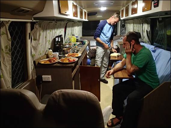 The road into the Stirling’s was rough as guts and at times we were stuck in second gear for ages. Everything in the bus rattled as we made our way slowly to the base of our proposed climbing spot. Hats off to Craig, as due to needing a light truck licence neither Howsie or I could legally take the wheel. That said on these roads I’d he rather than one of us broke his bus. We finally reached the parking bay, where we cooked up a big well deserved feed in. When we hit the sack we lay there listening to the rain pound the roof: