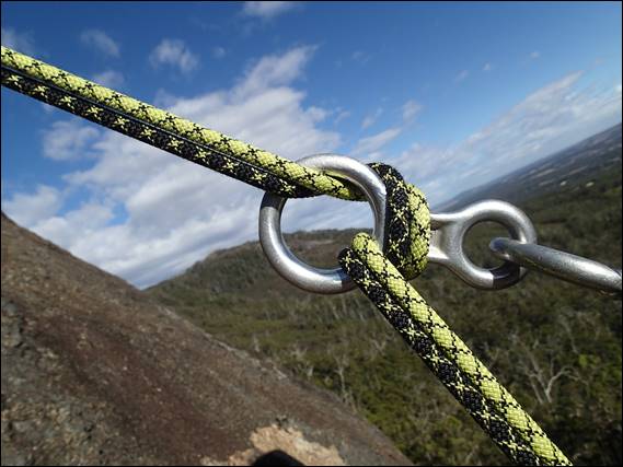 Craig started proceedings on the first of the two pitch 60m routes. His pitch was the same grade as his first lead and in a magnificent position close to an impressive arête. He took his time and being so close to the edge it looked and indeed felt pretty exposed. That with the added excitement of a strong gusty wind meant he took his time. He slowly inched his way up and only seemed to lose his cool once, when he dropped a bolt plate. Yes this place, despite being recently equipped, had been fitted with those quirky Australian carrot bolts: