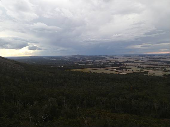 We took our time at the top of each climb, taking in the views and kicking back rather than rushing up and down. Usually when there is wet weather in this area the high peaks of both the Porongurup’s and Stirling’s would attract and be clad in cloud. However, across the broad valley the Stirling Ranges, our proposed destination for the second day, could also be seen bathed in sun. The wind was whistling overhead and the clouds were moving quickly across the sky, but luckily for us as the morning wore on the winds shifted from westerly to north westerly. In my mind I was picturing the low pressure system that was due to come in from the south west, and was quietly hopeful the changing wind direction would keep any rain south of us: