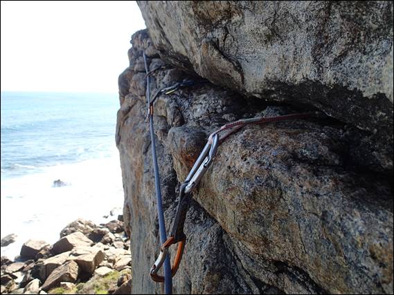 Before heading back down we watched Pete have a crack at Stainless Steel, not only his first encounter with Wilyabrup but he was also relatively new to the delights of bolt plates. The second plate for some reason was causing him troubles so he placed a wire over the carrot bolt. Despite managing to establish his feet on the ledge he is hanging onto, he couldn’t get in a comfy position to compose himself to go for the next bolt. Yo-yoing this move several times proved too much, I suspect the main reason being due to be wary about the wire on the bolt a foot or more below his feet: