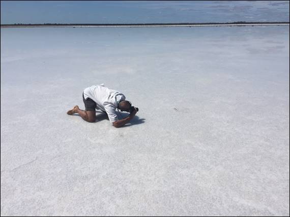 Lake Dumbleyung is where Donald Campbell’s famous 1964 world water speed record was set, reaching just under 445 km/h in his jet-powered boat called Bluebrid (version K7). Of interest the current official world water speed record is only 511 km/h so not that much more, which was achieved way back in 1978 at yet another inland Australian lake called Blowering Dam Lake in New South Wales. Lake Dumbleyung is a salt lake, and during dry spells becomes a flat crust of salt. As we approached Lake King we passed a number of much smaller such lakes that didn’t have water, and stopped at one to walk out on it and take a few images: