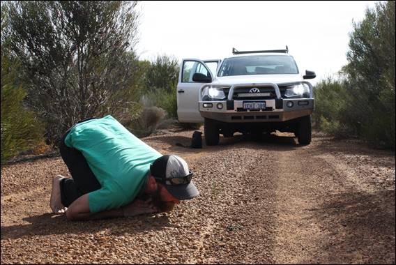 Then on a good part of the road where I was doing 80 km/hr I thought I saw something on the road. After stopping, in a controlled fashion of course, we reversed back to see if I was right. How I missed this little critter driving past and then reversing back on such a narrow stretch I have no idea. It was just a few inches from the tyre worn part of the road, a little more to the side and I would have squished it. I’m still staggered I even saw it but am damned happy I did: