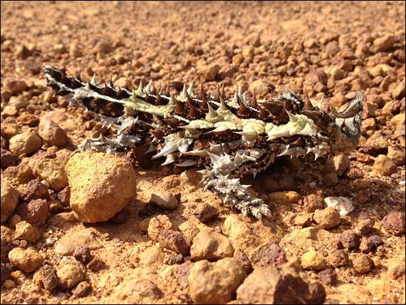 I’ve never seen a Thorny Devil in the wild, having only seen them at reptile parks. When we lived in Alice Springs it was the one creature that I would have given my right arm to have seen in the wild, but we were not lucky enough to see one. These guys walk like a leaf that is blowing in a gentle wind, swaying back a forward while moving slow forwards. The colours were very striking and it’s impressive armour giving it it’s great name. We spent a good ten minutes watching this fella before making sure he was safely off the road, then we set off again: