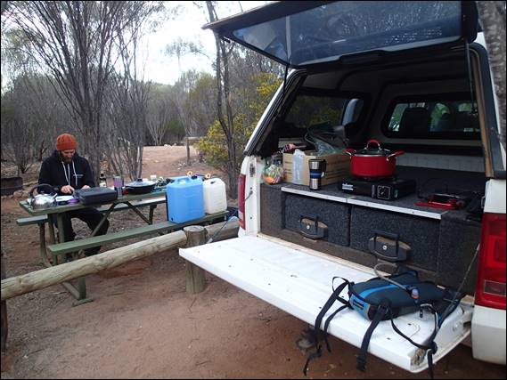 Eventually we got to the junction to turn into the national park and the last 20km to reach the campsite. This road was managed by the state government so was in good condition and we could pick the pace up. We had one short stop to take a picture as we got a bit closer, but other than that were keen to finally get there rolling into the campsite some 9 hours after leaving Bunbury: