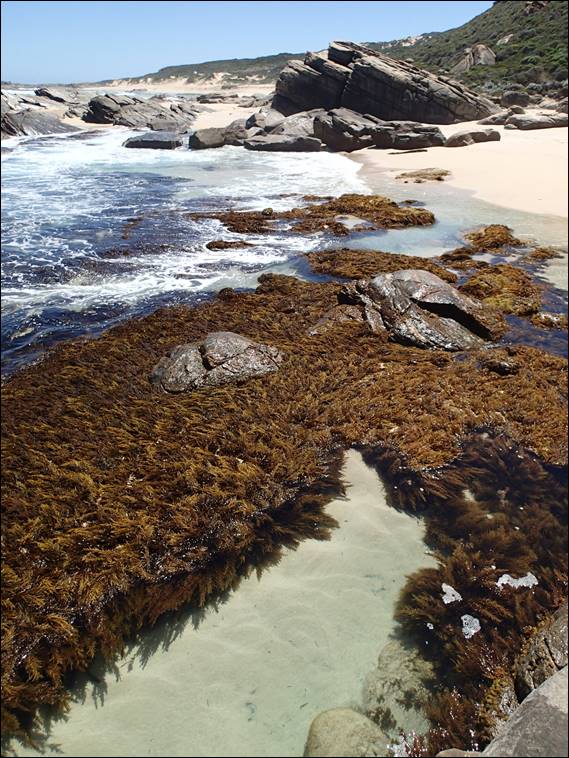 The following image is again for people who know the area, we had really low tides all morning and just like the rocks we had seen on the main beach, the second smaller beach was also had a mob of rocks and seaweed pools exposed that I have not seen before. It may have been a great day to get into the zawn but we will leave that for another day, as I am sure we will be back again in the not too distant future for some more barefoot fun: