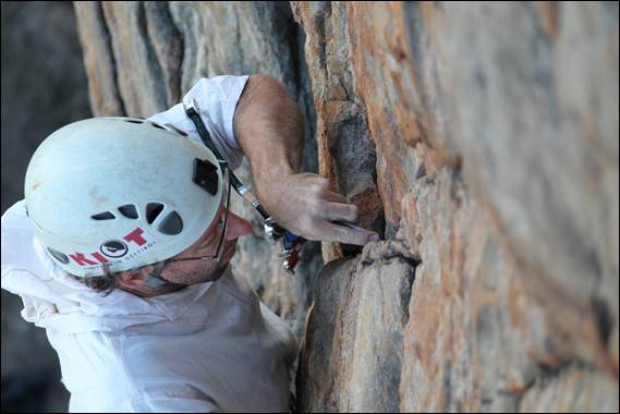 Totally Awesome is very well named, and the middle portion in particular has very fine climbing. Watching Rongy lead it from this angle allowed me to see another way to get through the gnarly upper section in what looked to be a slightly less intense way. Truth be told on this section the use of tri-cams didn’t really slowing him down, which is probably a good thing: