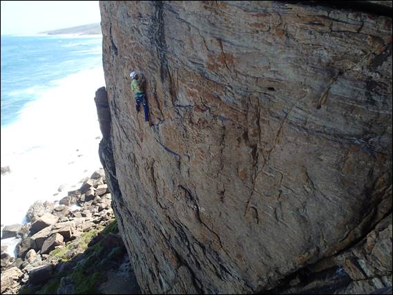This route is not the hardest on the wall, but is arguable one of the finest due to its sustained nature. The steep wall, slightly overhung in places, doesn’t let up and while the handholds are mostly positive they are small, with the need for big moves in-between them. Watching Wiggins climb is inspiring due to the way he can hang in a position and chill out, even when that position is pumpy and exposed: