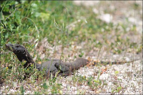 The walk out felt warm. Maybe it was the additional weight from the rocks we had in our packs and arms, or more likely it was the fact that there was only a very light breeze and the sun was now high in the sky. The seasons are certainly changing, as we were lucky to spy a king skink basking on the rocks and then walking out this beautiful goanna was lazing on the edge of the walk track. He didn’t seem to mind us even when we stopped to watch him for a bit: