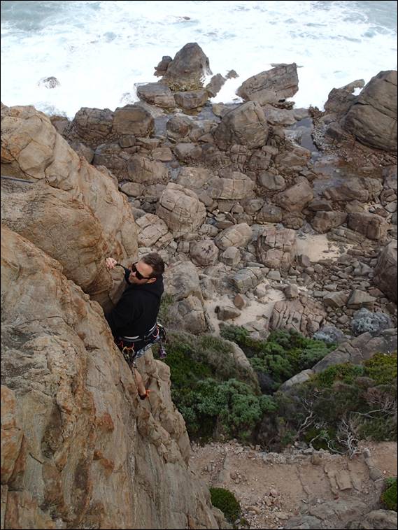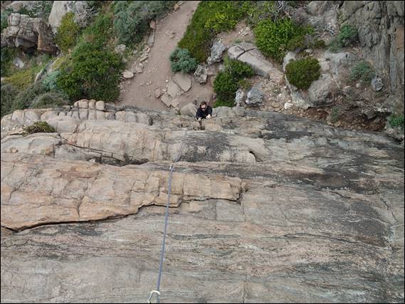 It was a glorious day, overcast but warm and only a light breeze. The rock was dry and the friction was perfect. So it was a little surprising that on our 7am arrival we were greeted to an empty carpark. In a way I was pleased not to bump into Mick and one of his tour groups today, as I intended to hover round the lines that he would normally throw his ropes down:
