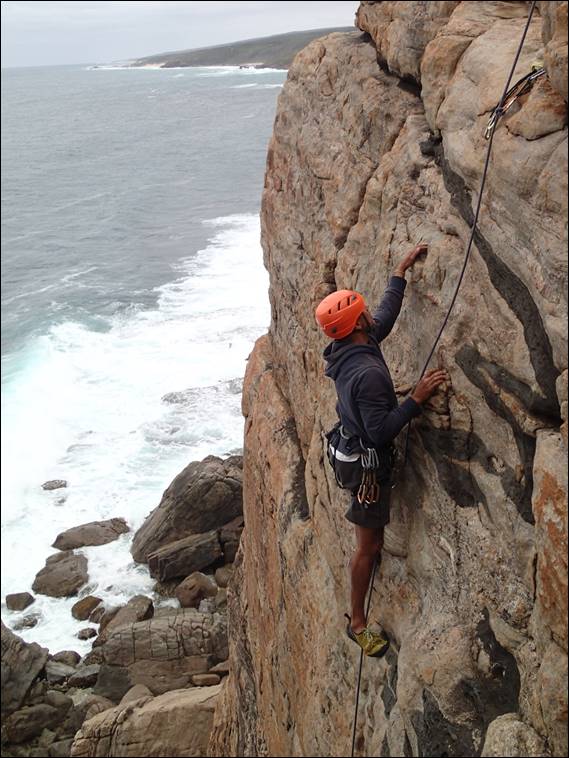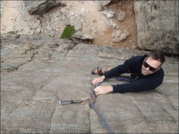 He did manage to pull it off but his fingers looked red and his toes were clearly telling him enough was enough. That only left me to rap down and get that pesky wire out. Then enjoying the fine moves and holds on this line one more time, as I self-belayed up the route. We walked back down and a couple of climbers appeared following us down. After a quick chat we packed up our gear and left them to enjoy the peace of the place: