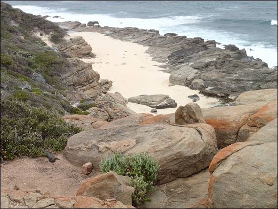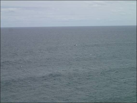 After walking out, getting that usual tree-trunk leg feeling that climbing up the faces doesn’t seem to give me, Dean spied a whale. So we sat atop staring out to sea and spotted a few big ones far out to see and a pod of four or five a bit closer. They were not moving anywhere fast but we did eventually have to get back on the road so we left while they continued to play in the bay: