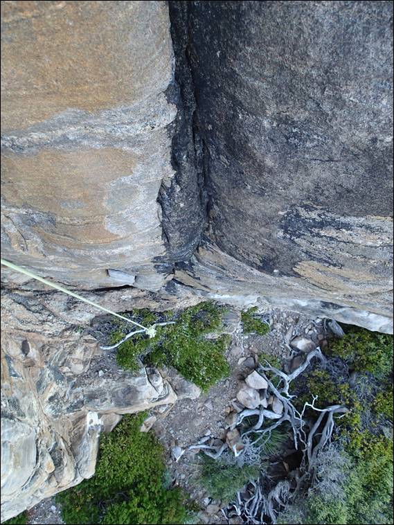 Going back in time to April 2012, I did the first ascent of Trust Your Instincts an alternate, and to me more logical, finish to Power Your Mind. In my last email I mentioned that the top of this route had changed, with the final blocky finish having disappeared. Eagle-eyed Steve had also noticed in the images I provided that the block sat back from the edge of the belay ledge was also gone. It is possible that this block had been pushed off taking with it the top of my route. The question I wanted to be able to answer however was how would my route climb now: